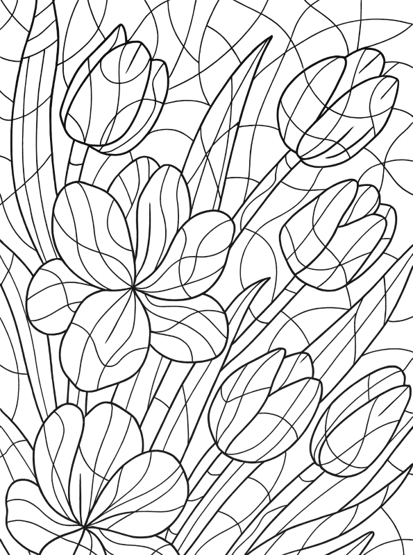 stained glass tulips coloring page