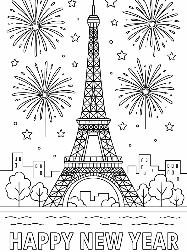 Happy New Year Paris coloring page