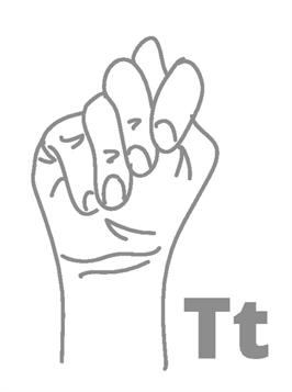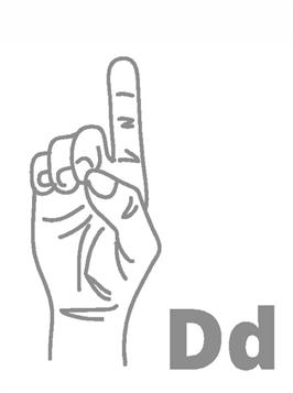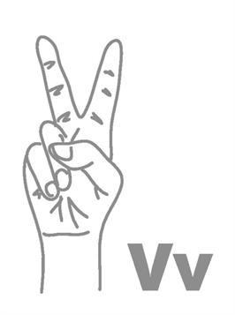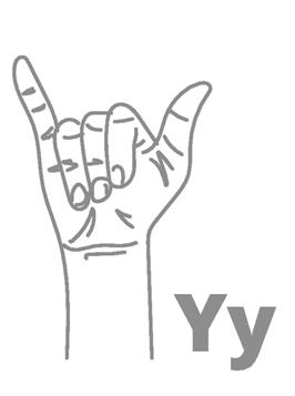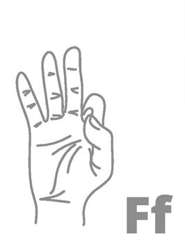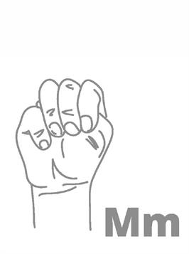 You see drawn examples of the sign language alphabet, which you can print, but also color.