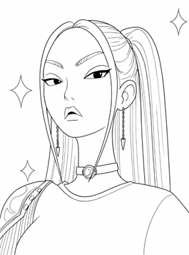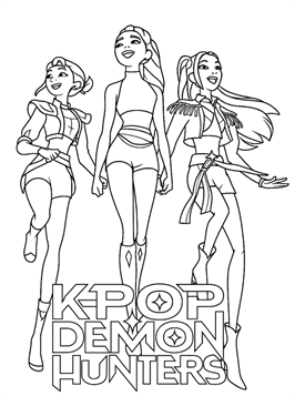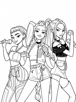Our K-Pop Demon Hunters coloring pages feature the heroines of K-Pop Demon Hunters, the exciting and colorful Netflix animated film that follows a popular K-pop group performing on stage by day and secretly saving the world from dark monsters by night. You'll find fierce idol heroes battling demons, wielding magical powers, and performing in spectacular, detailed outfits. Each coloring page tells a little bit about their world: from intense fight scenes to backstage moments where the hunters show off their iconic K-Pop look.