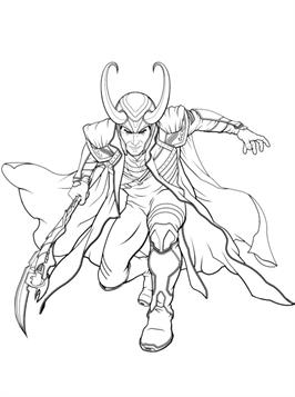 Coloring pages of Loki, from Marvel, now on DisneyPlus.